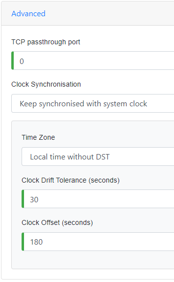 Set the Clock Offset to 180 seconds